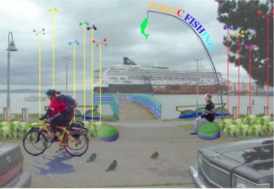 The Blue Greenway Public Art Program is a collaborative undertaking of the Mayor’s Office, the Port of San Francisco, the Recreation and Parks Department, the San Francisco Arts Commission, and the San Francisco Parks Alliance (SFPA). The program is designed to promote innovation and community engagement in the development of the Blue Greenway through the creation of a public Art Trail. It is envisioned that the Trail will eventually become part of a larger citywide public art program that includes both temporary and permanent pieces. The Trail will stretch from AT&T Park to the southern border of San Francisco and will include the temporary installation of existing, large-scale public art and sculptures which provides a consistent image for the Blue Greenway.